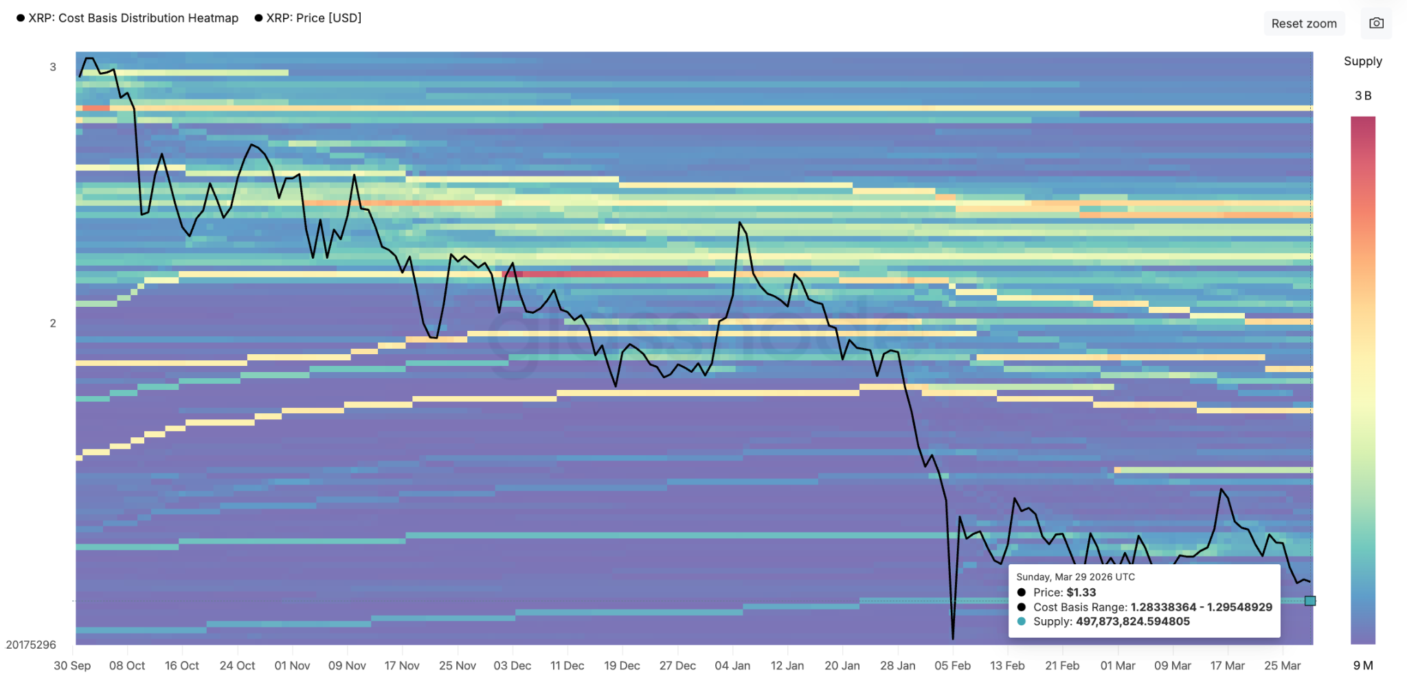 XRP cost-basis distribution heatmap. Source: Glassnode