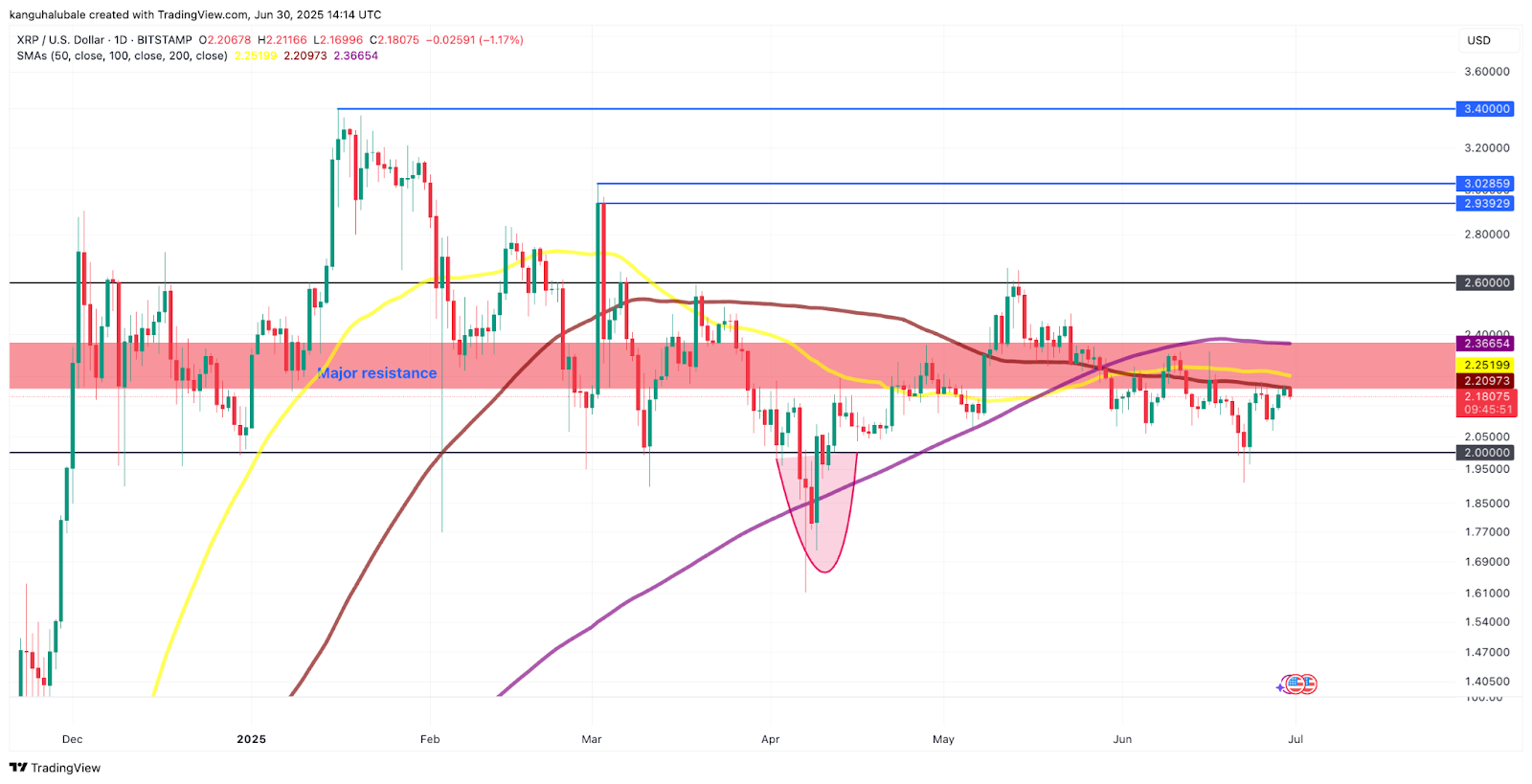 XRP (XRP) price displayed indecision on June 30, down 0.8% over the last 24 hours to trade at $2.17.