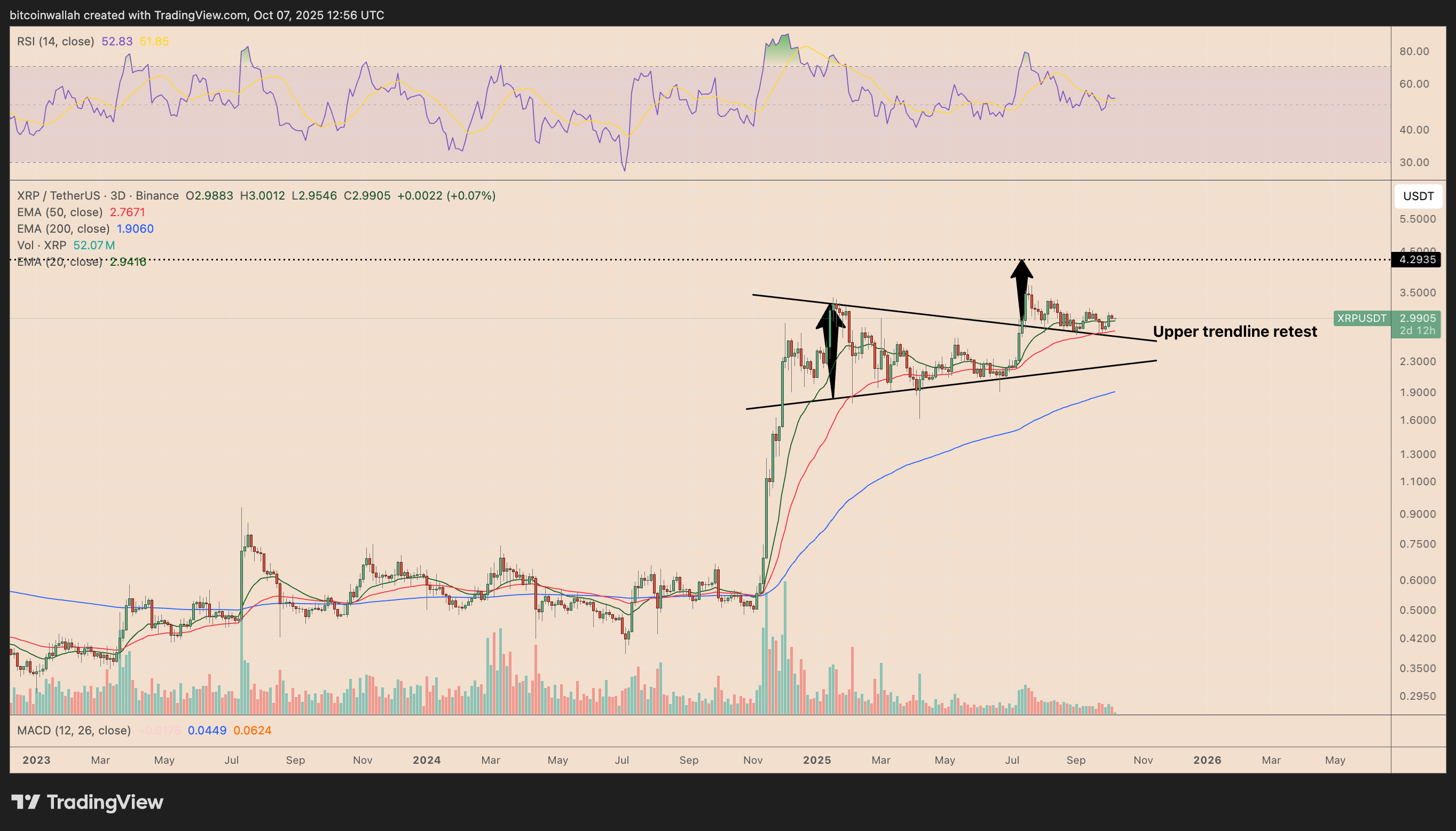 A successful rebound from this level could pave the way for a rally toward $4.29, roughly 45% above current prices. The upside target aligns with multiple XRP bullish predictions shared in the past.